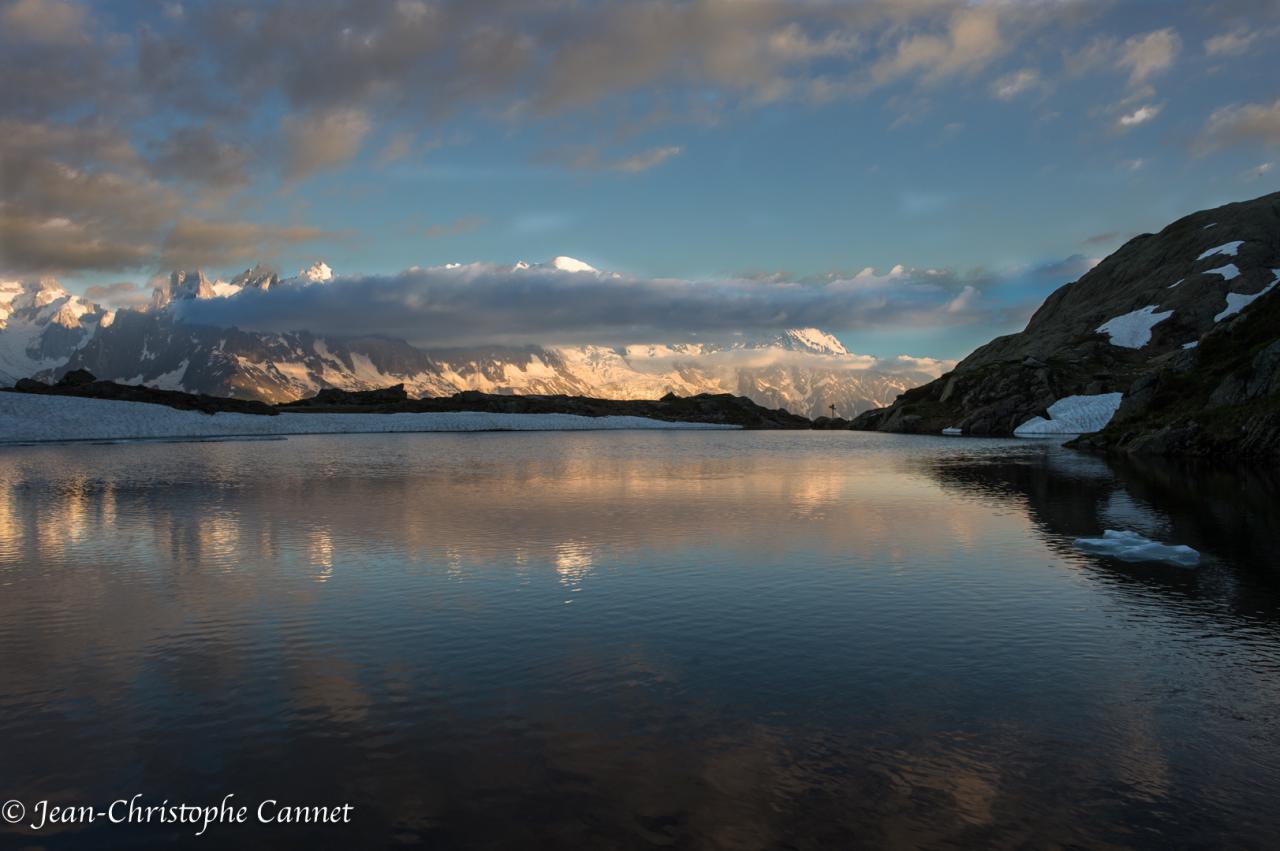 Couché de soleil sur le lac des Cheserys, 2211m d'altitude.