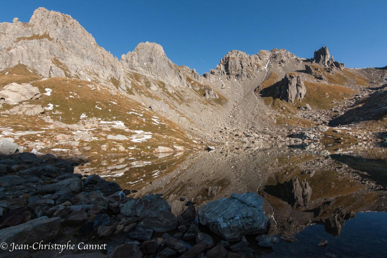 Reflet dans le lac de Presset. Essayez de deviner où se situe les contours du lac.
